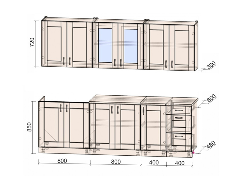 Внимание! Сушильная фурнитура в комплект не входит! Дополнительно кухонный гарнитур можно доукомплектовать шкафом под вытяжку (шириной 50 см или 60 см) и под встраиваемую духовку.