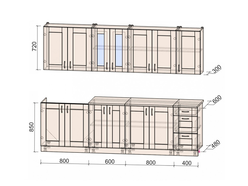 Внимание! Сушильная фурнитура в комплект не входит! Дополнительно кухонный гарнитур можно доукомплектовать шкафом под вытяжку (шириной 50 см или 60 см) и под встраиваемую духовку.