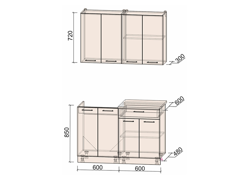 Внимание! Сушильная фурнитура в комплект не входит! Дополнительно кухонный гарнитур можно доукомплектовать шкафом под вытяжку (шириной 50 см или 60 см) и под встраиваемую духовку.