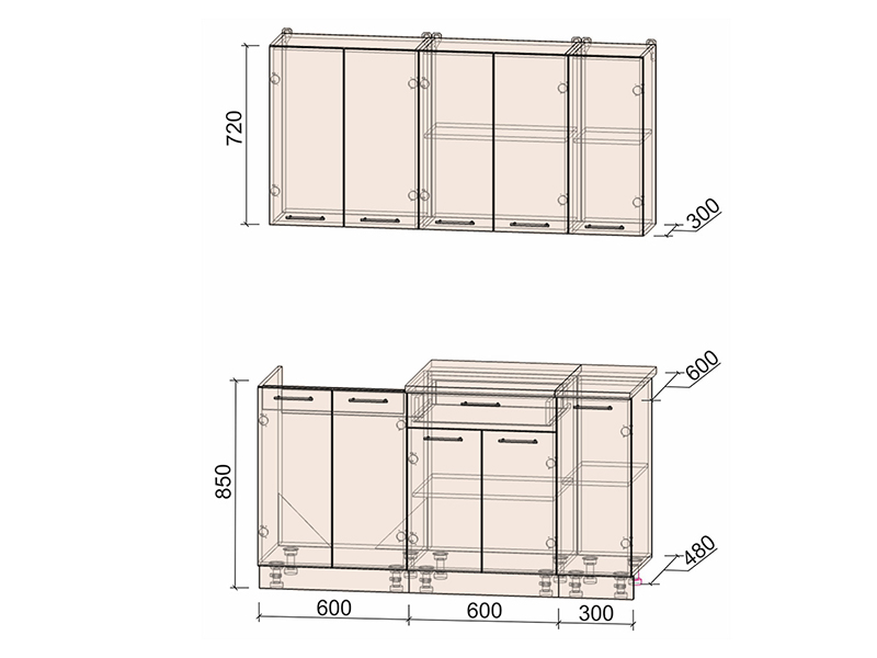 Внимание! Сушильная фурнитура в комплект не входит! Дополнительно кухонный гарнитур можно доукомплектовать шкафом под вытяжку (шириной 50 см или 60 см) и под встраиваемую духовку.
