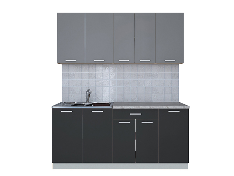 Линейная кухня «Мила Лайт» 1.8 м, антрацит-серебро
