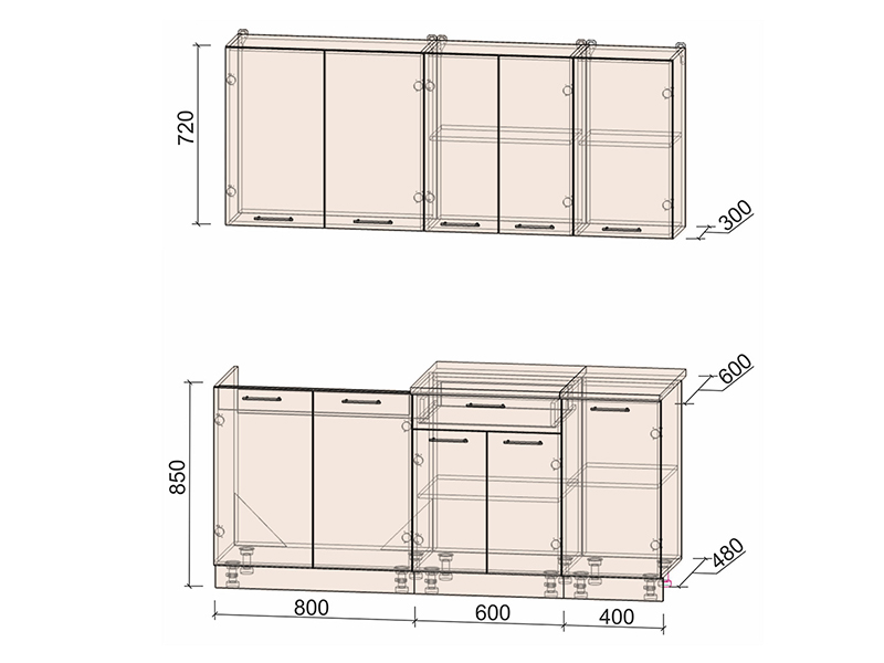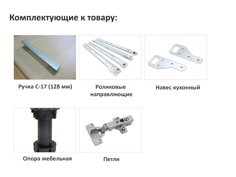 Внимание! Сушильная фурнитура в комплект не входит! Дополнительно кухонный гарнитур можно доукомплектовать шкафом под вытяжку (шириной 50 см или 60 см) и под встраиваемую духовку.