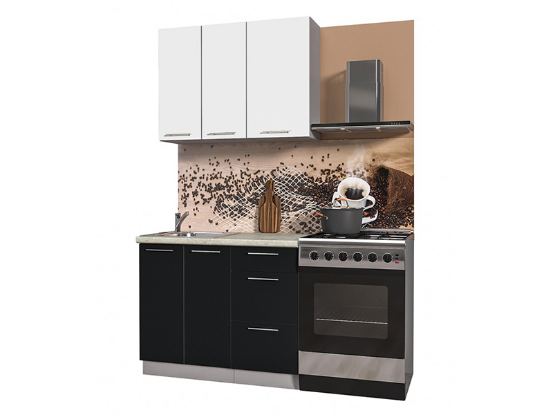 Линейная кухня «Мила Пластик» 1.0А, черный-белый