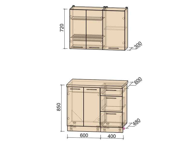 Ширина шкафа под мойку: 60 см.