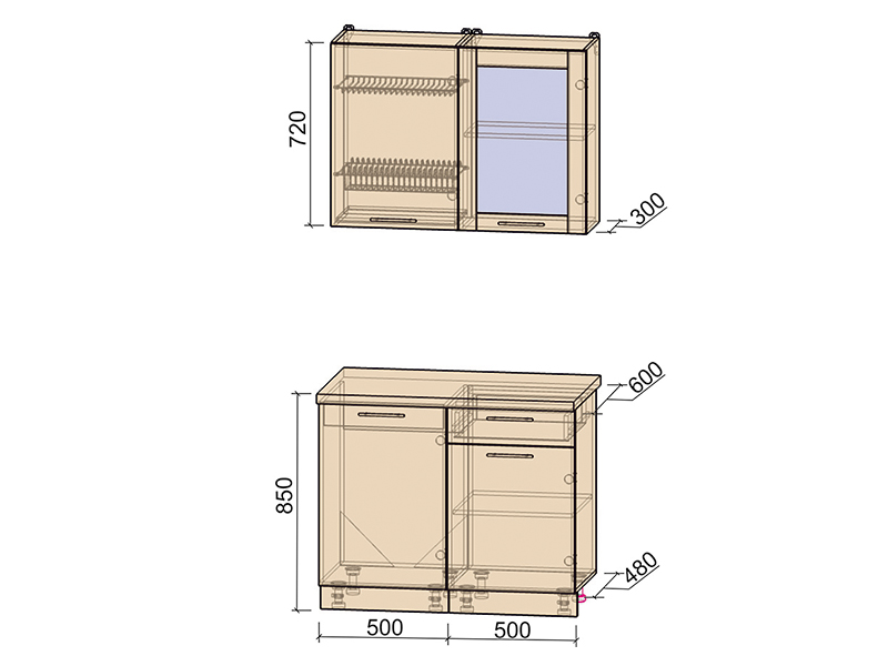 Внимание! Кухонная мойка в комплектацию не входит и покупается отдельно! Дополнительно кухонный гарнитур можно доукомплектовать шкафом-пеналом шириной 60 см или иными модулями из коллекции «Мила Пластик».