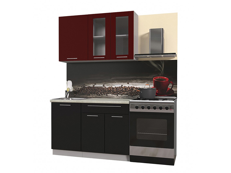 Линейная кухня «Мила Пластик» 1.3Б, черный-бордо
