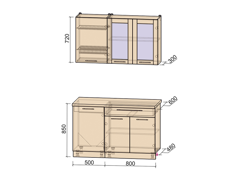Внимание! Кухонная мойка в комплектацию не входит и покупается отдельно! Дополнительно кухонный гарнитур можно доукомплектовать шкафом-пеналом шириной 60 см или иными модулями из коллекции «Мила Пластик».