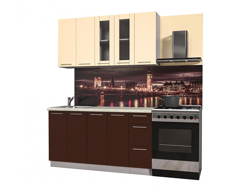 Линейная кухня «Мила Пластик» 1.5Б, шоколад-ваниль