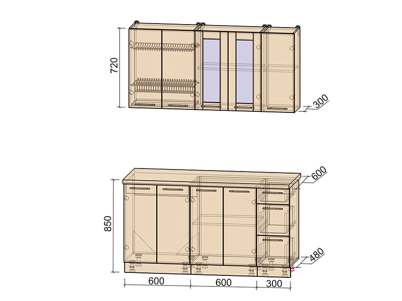 Внимание! Кухонная мойка в комплектацию не входит и покупается отдельно! Дополнительно кухонный гарнитур можно доукомплектовать шкафом-пеналом шириной 60 см или иными модулями из коллекции «Мила Пластик».
