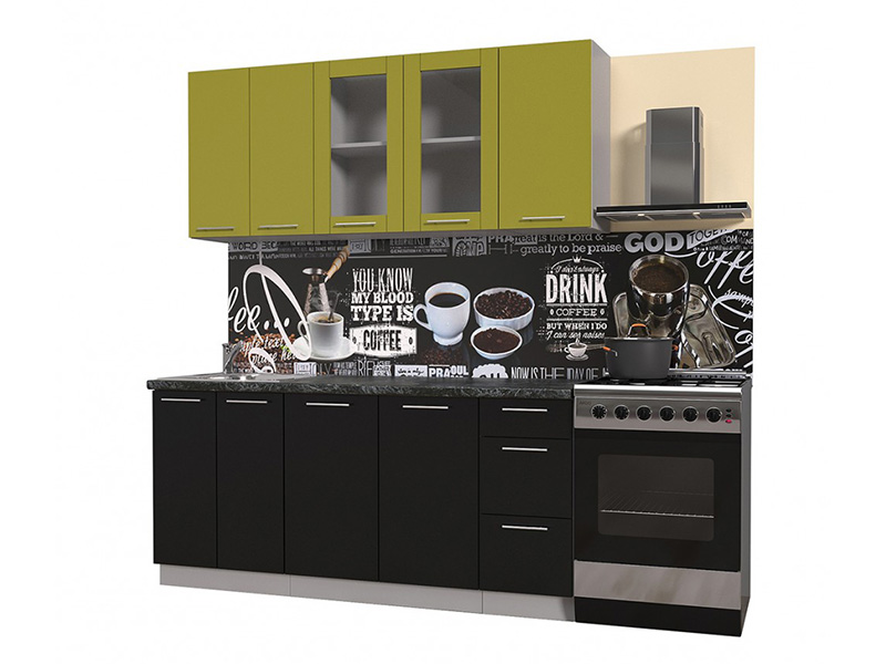 Линейная кухня «Мила Пластик» 1.8Б, черный-оливковый