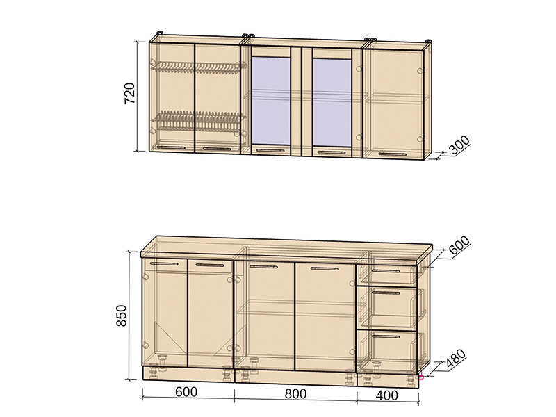 Внимание! Кухонная мойка в комплектацию не входит и покупается отдельно! Дополнительно кухонный гарнитур можно доукомплектовать шкафом-пеналом шириной 60 см или иными модулями из коллекции «Мила Пластик».