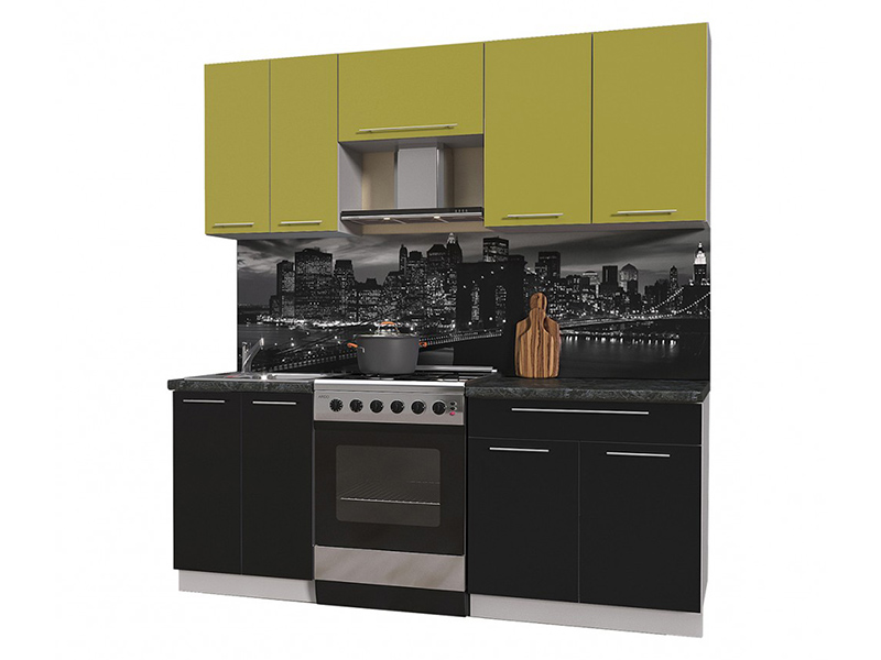 Линейная кухня «Мила Пластик» 2.0А, черный-оливковый