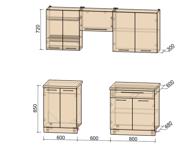 Внимание! Кухонная мойка в комплектацию не входит и покупается отдельно! Дополнительно кухонный гарнитур можно доукомплектовать шкафом-пеналом шириной 60 см или иными модулями из коллекции «Мила Пластик».