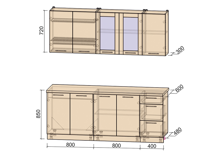 Цвет фасада (низ/верх): капучино.