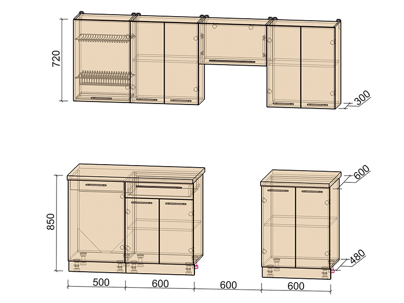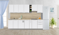 Внимание! Кухонная мойка в комплектацию не входит и покупается отдельно! Дополнительно кухонный гарнитур можно доукомплектовать шкафом-пеналом шириной 60 см или иными модулями из коллекции «Мила Пластик».