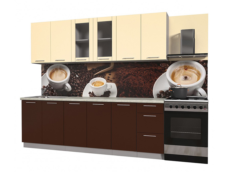Линейная кухня «Мила Пластик» 2.4Б, шоколад-ваниль