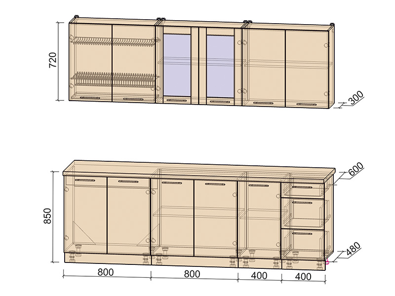 Цвет фасада (низ/верх): шоколад/ваниль.