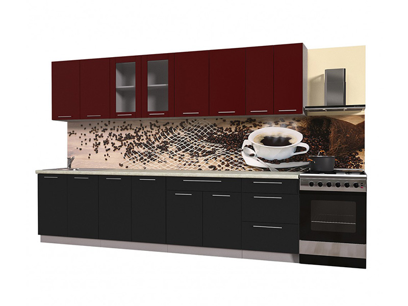 Линейная кухня «Мила Пластик» 3.0Б, черный-бордо