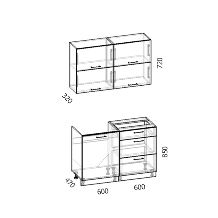 Высота нижних модулей: 85 см.