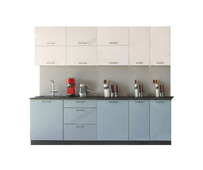 Линейная кухня «Mix-36» 2,1 м, белый-сумеречный голубой