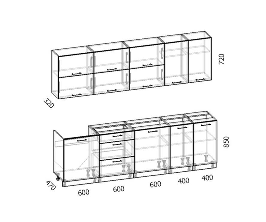 Внимание! Стоимость готового гарнитура указана без учета столешницы. Мойка и сушильная арматура также приобретаются отдельно.