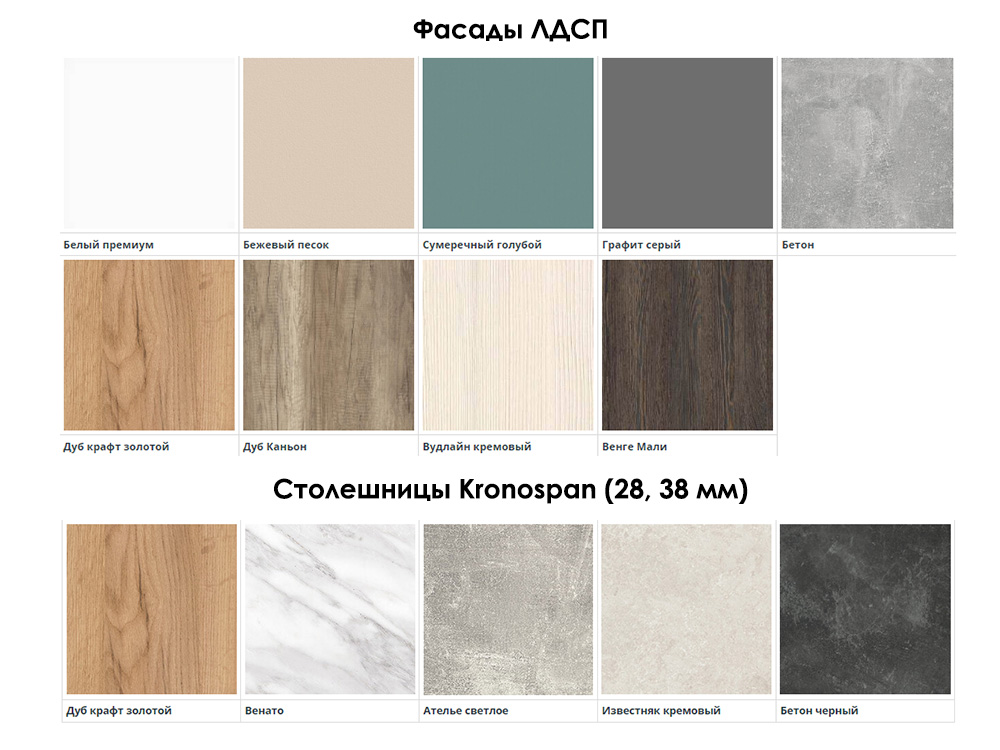 - Столешница толщиной 28 или 38 мм (отдельная на каждый шкаф),