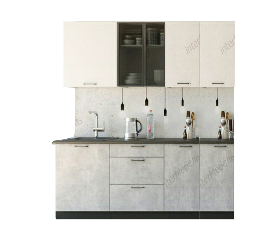 Линейная кухня «Mix-45» 2,0 м, белый-бетон