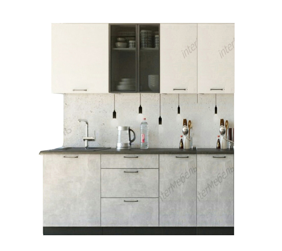 Линейная кухня «Mix-46» 2,1 м, белый-бетон