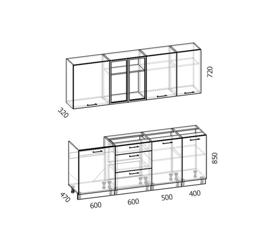 Высота нижних модулей: 85 см.