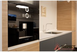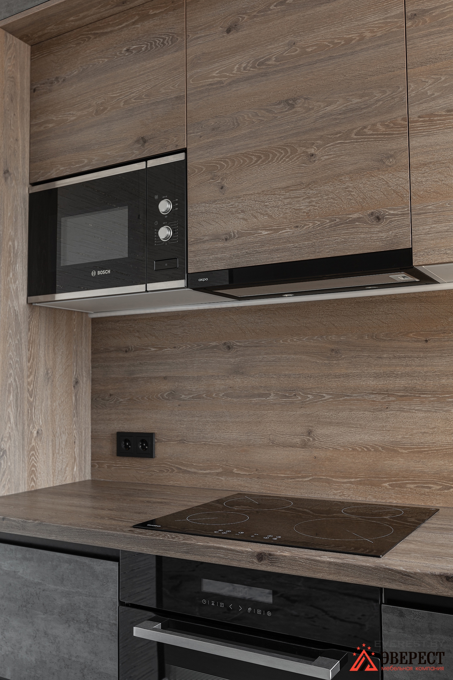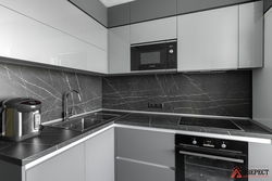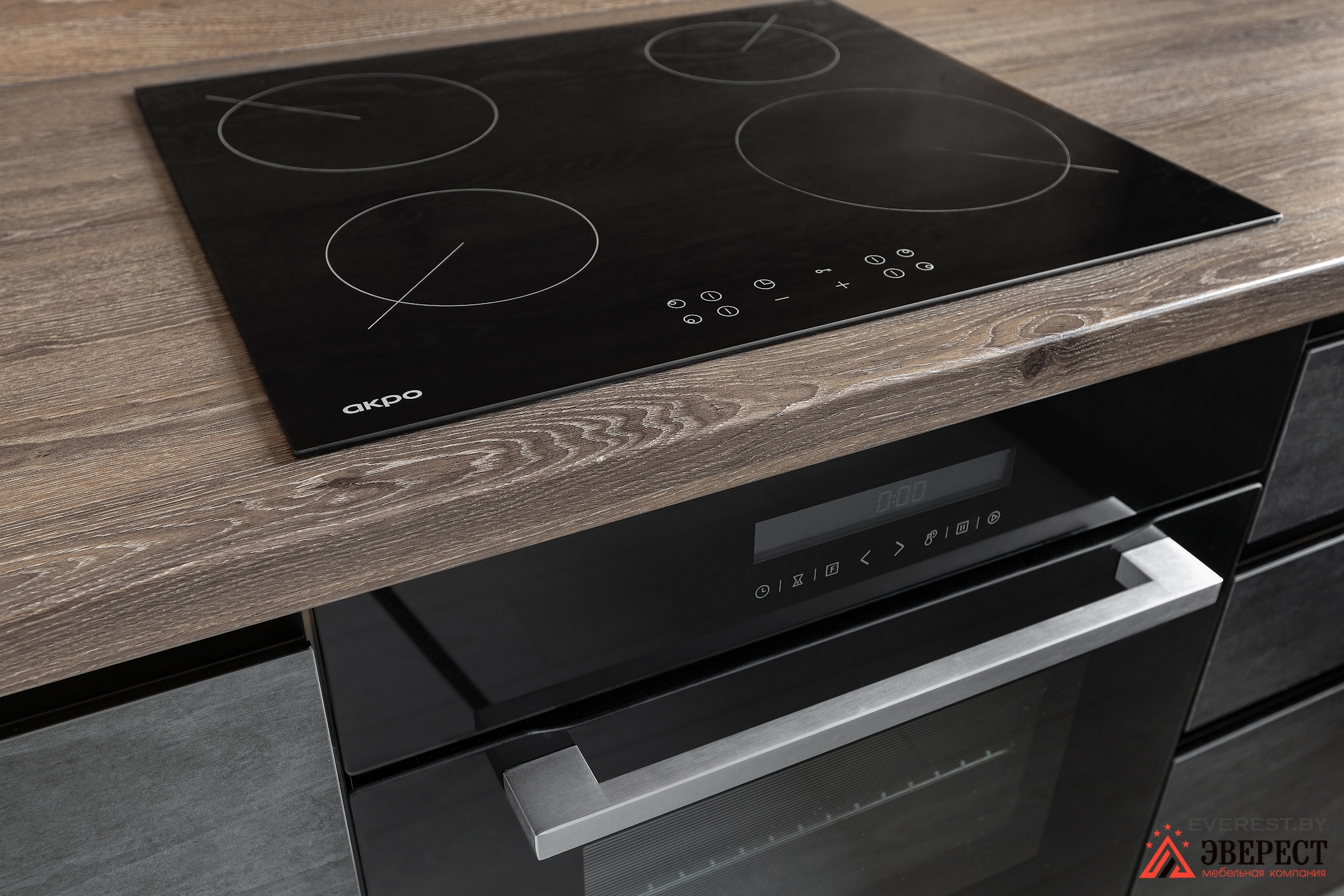 код 123698Фасады: ЛДСП. Фурнитура: BLUM с доводчиками. Столешница: постформинг. Подсветка.
