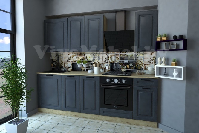 Кухня угловая «Луиза Люкс» 1.2x2.8 м Древесина графит - Древесина белая