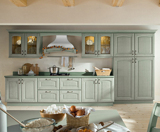 Линейная кухня «Karrara» – это кантри в сочетании с классикой. Типичное для традиционного стиля оформление фасадов оригинально сочетается с выразительной структурой живого дерева, имитирующего беленную поверхность, свойственную мебели итальянской глубинки.