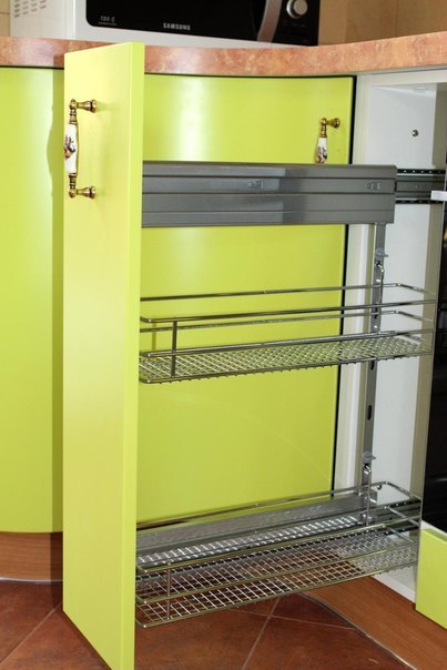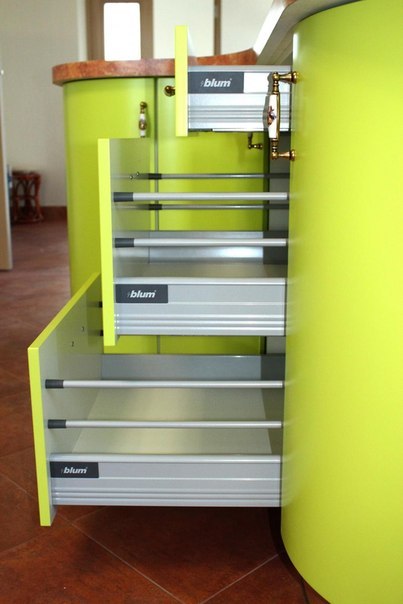 Современная кухня с увеличенным рабочим пространством. Практичность кухни в оригинальном изгибе, позволяющем значительно расширить рабочее место.