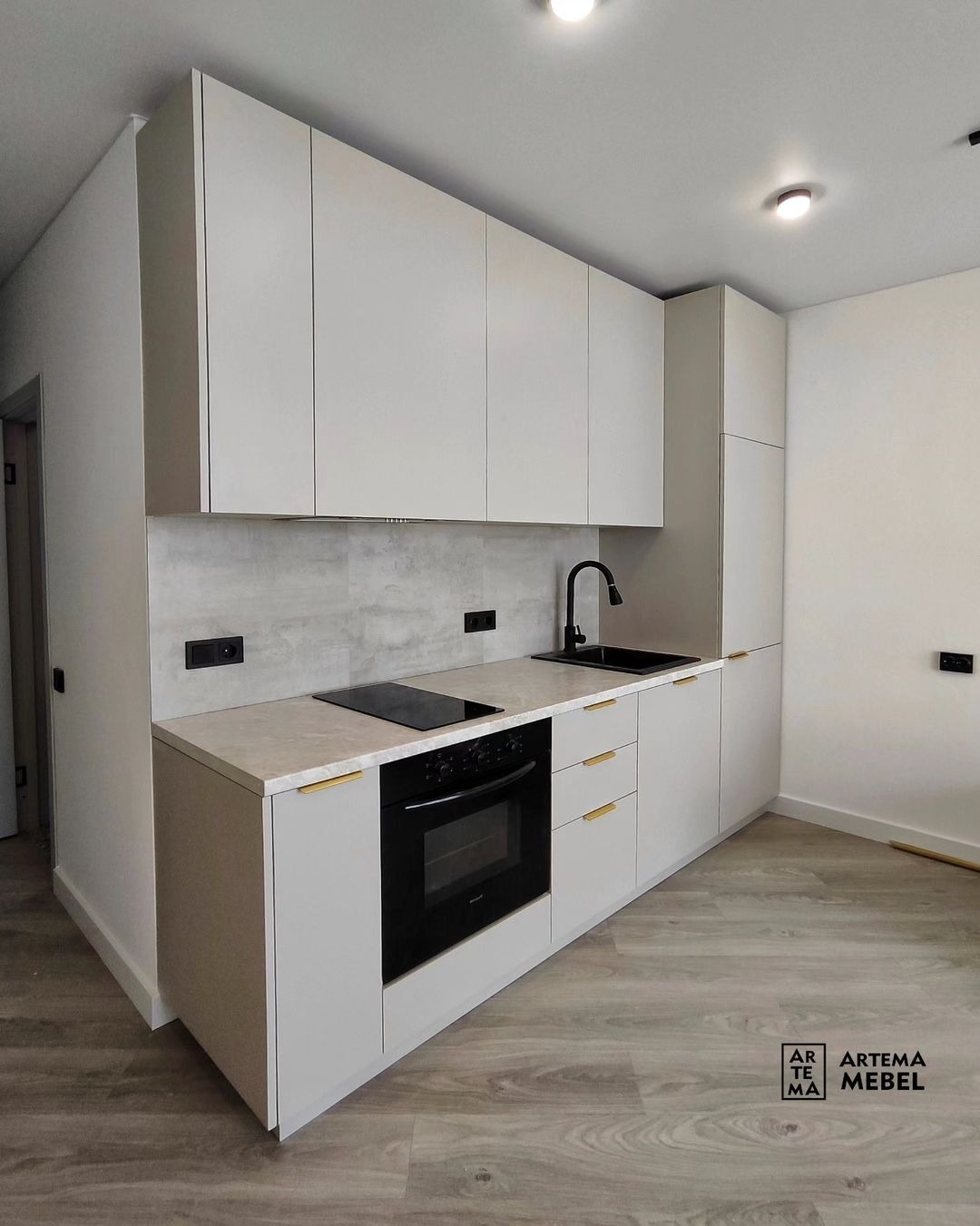 Линейная кухня цвета кашемир