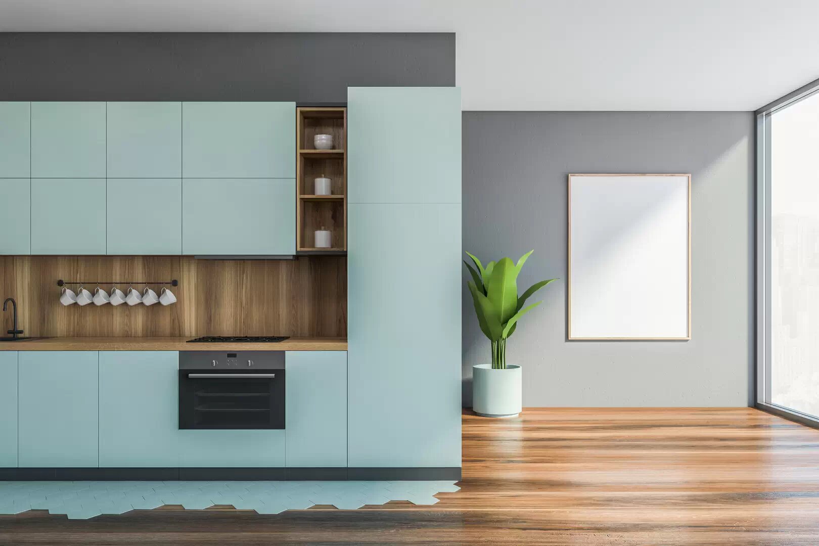 Кухня прямая «Агата» 2.1 м Файнлайн крем - Зеленая мамба
