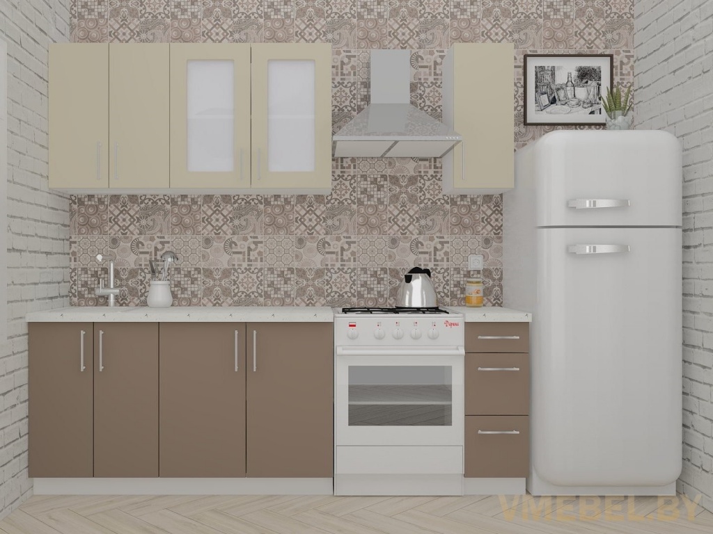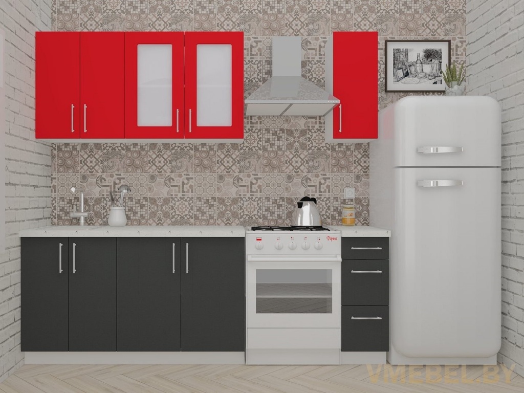 Верхние фасады со стеклом. Ширина кухни 200 см.