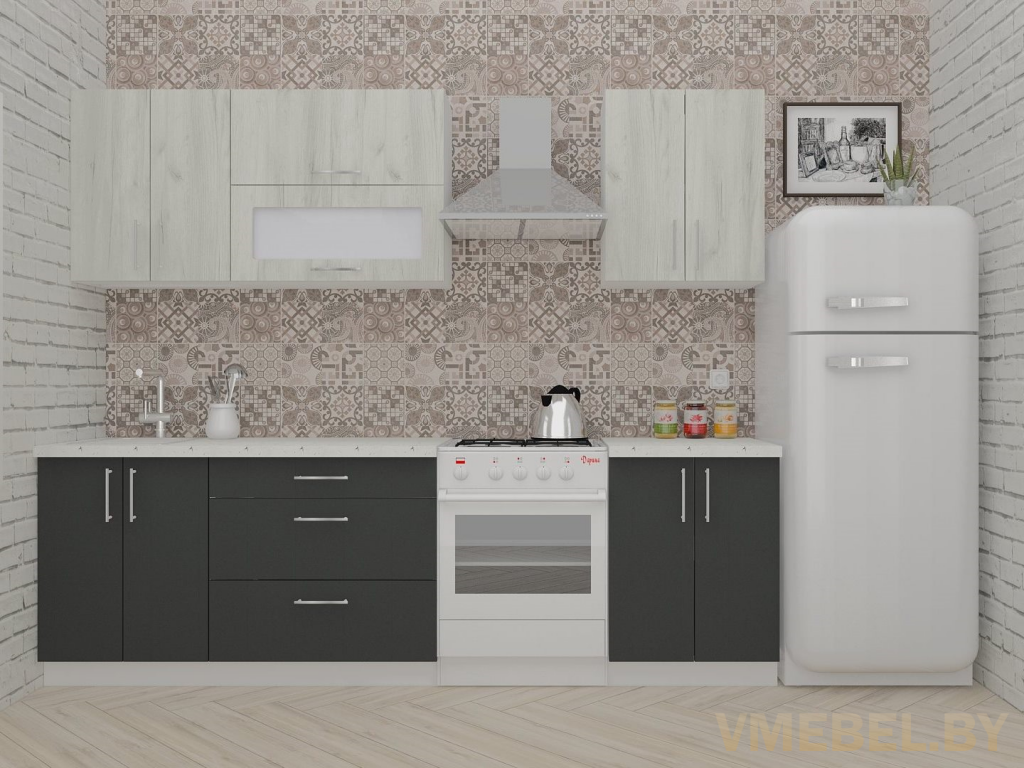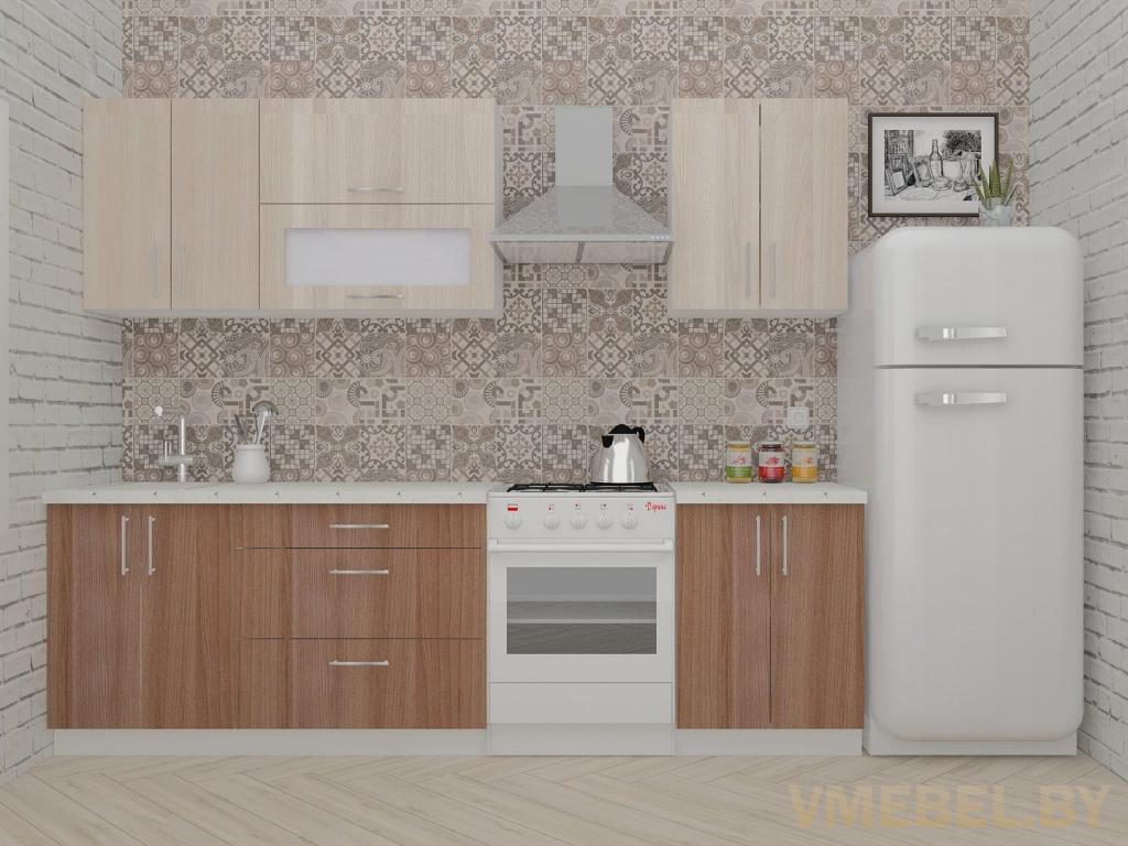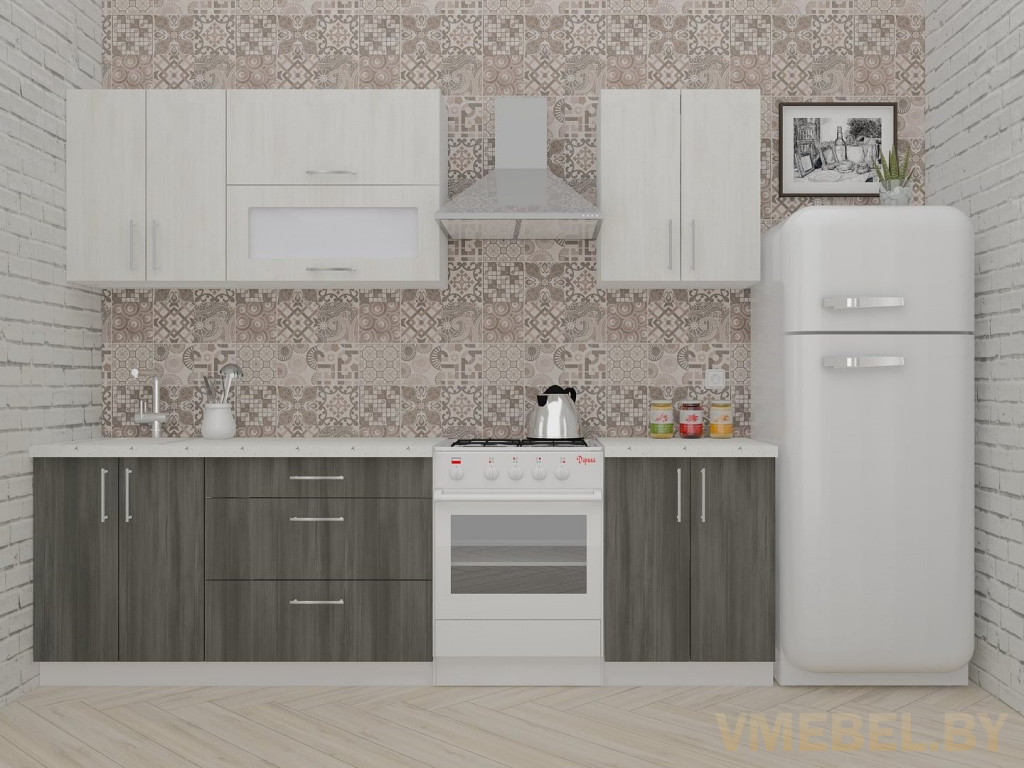 Прямая кухня «Яна» ДСП 2.2 м, артвуд светлый/артвуд темный