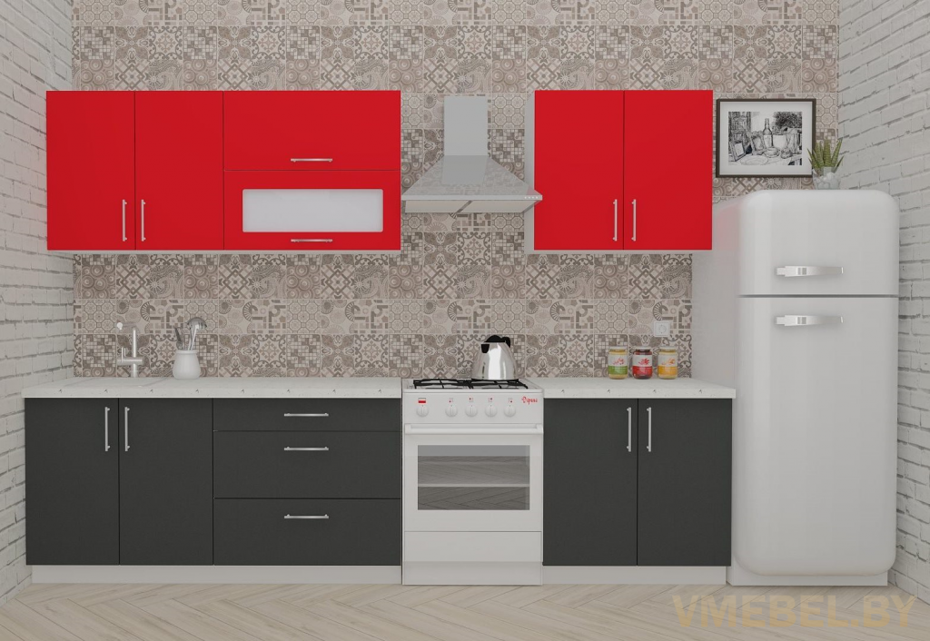 Материал фасада и корпуса: ЛДСП 16 мм. Ширина кухни 260 см.