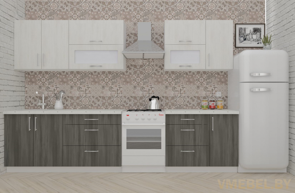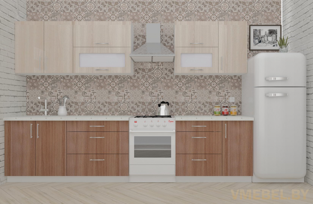 Прямая кухня «Яна» ДСП 2.2 м, артвуд светлый/артвуд темный