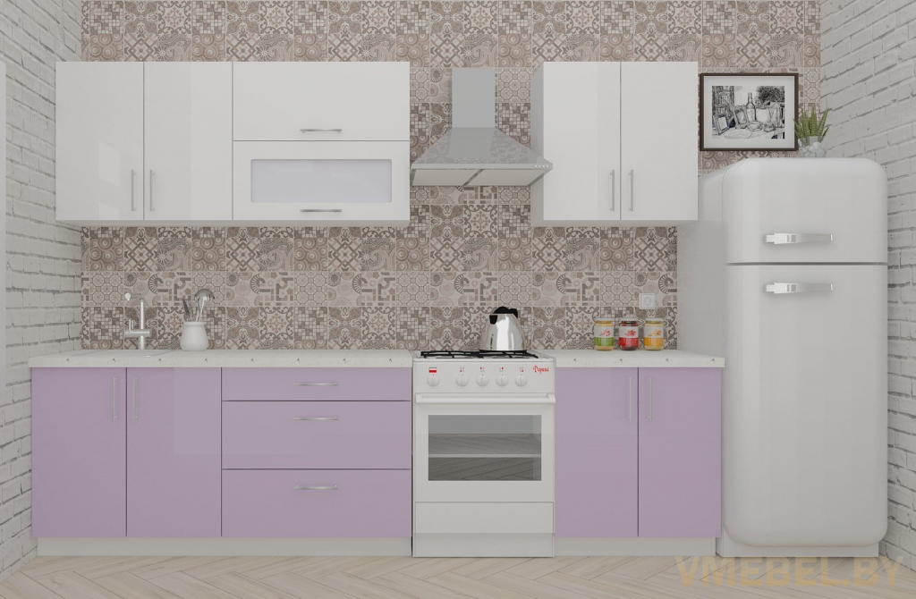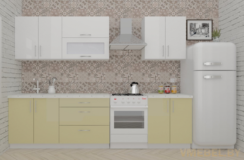 Прямая кухня «Адель» МДФ 2.6 м, жемчуг-барокко