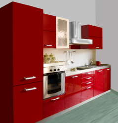 Красивая и яркая линейная модель кухни. Высокая функциональность выражена наличием множества просторных шкафов с широкими полками. Утолщенная широкая столешница обеспечит надежность и сделает процесс приготовления пищи более приятным. Фасады комплекта выполнены из ярко-красного глянца.