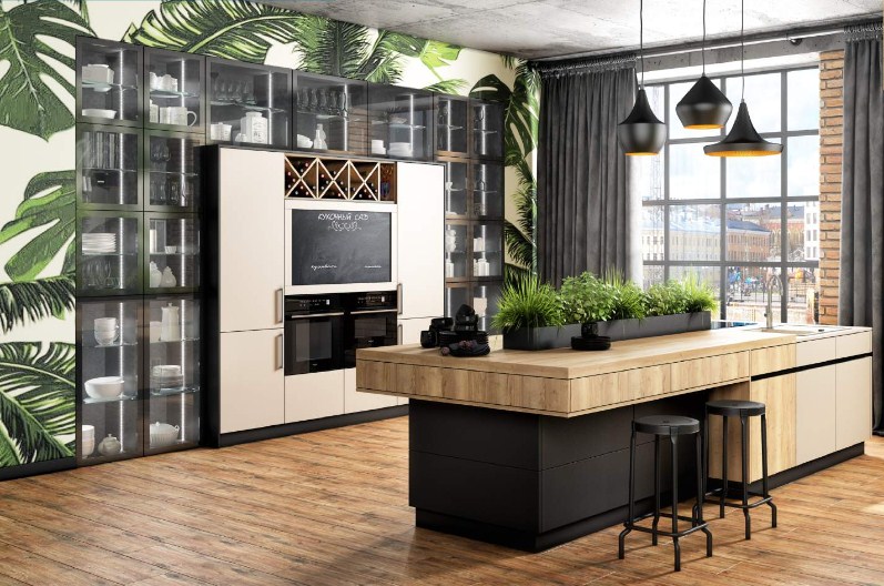 П-образная кухня из ЛДСП Egger с черной столешницей