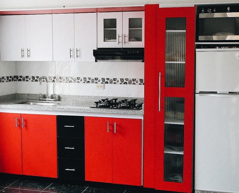 Линейный кухонный гарнитур в трех цветах