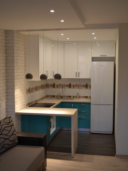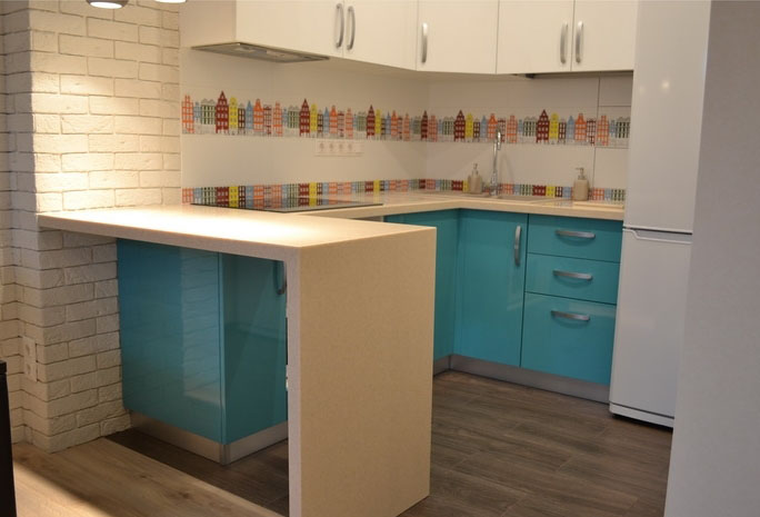 Маленькая кухня из пластика глянец Белый - Бирюза
