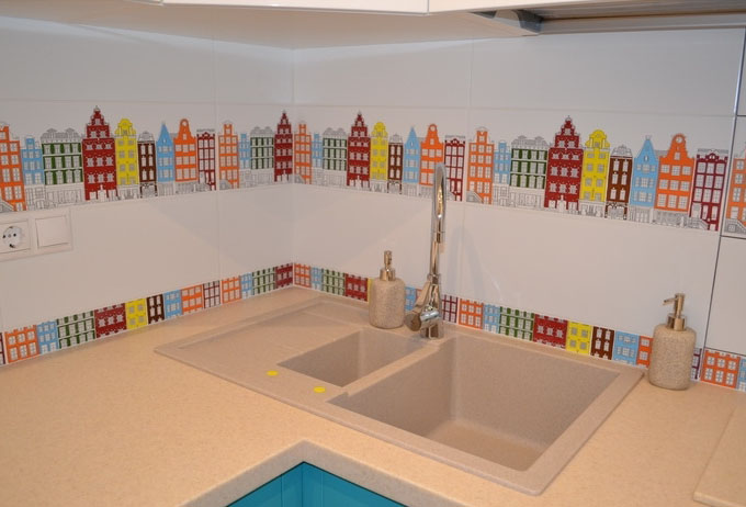 код 82018Бежевая столешница, бирюзовый низ, белый фасад верха.