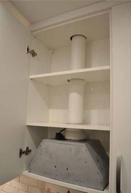 Уютная угловая кухня обладает компактными габаритами, поэтому она отлично подойдет для небольших помещений. Фасады комбинированные, выполненные в белом и бирюзовом глянце. Крупные дугообразные ручки позволят с легкостью открывать дверцы и шуфлядки. Один из навесных шкафчиков предназначен для встраивания вытяжки, которая будет скрыта посредством дверцы.