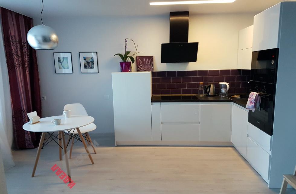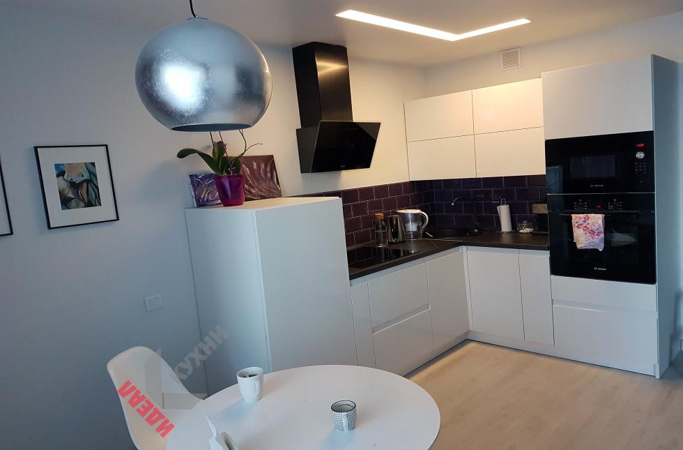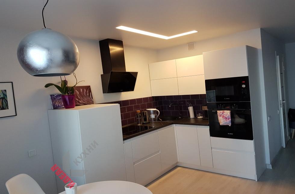 код 103400Выполнена в белом матовом цвете. Ниши для техники, интегрированные ручки.