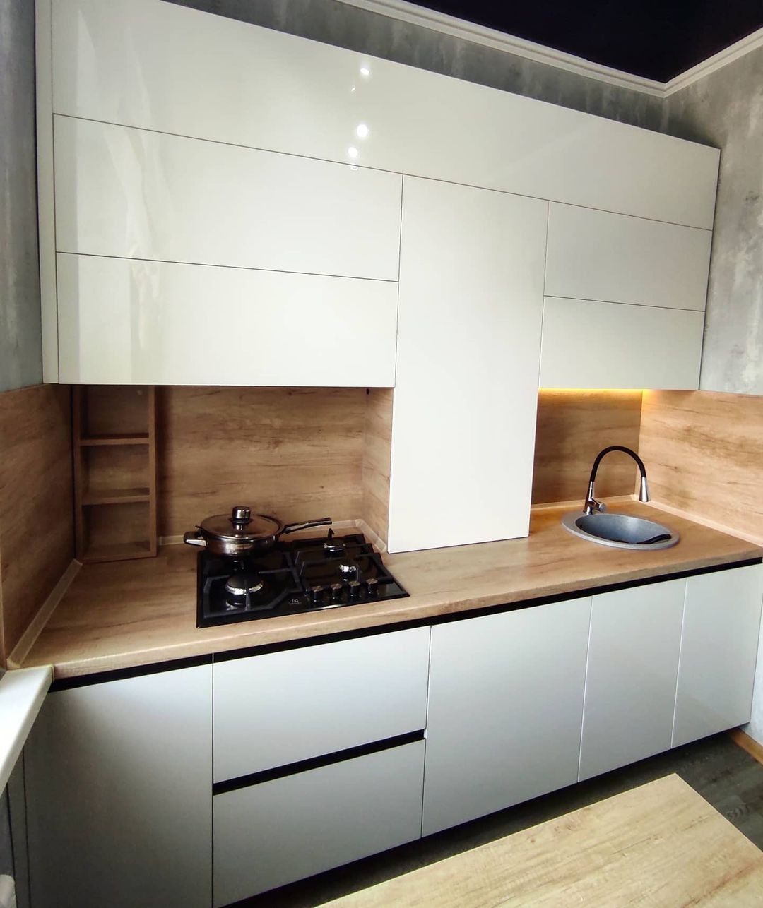В кухне использовались 4 типа фасадов и два цвета ДСП.