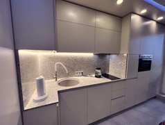 Комбинированные фасады из МДФ. Ширина кухни 260 см.