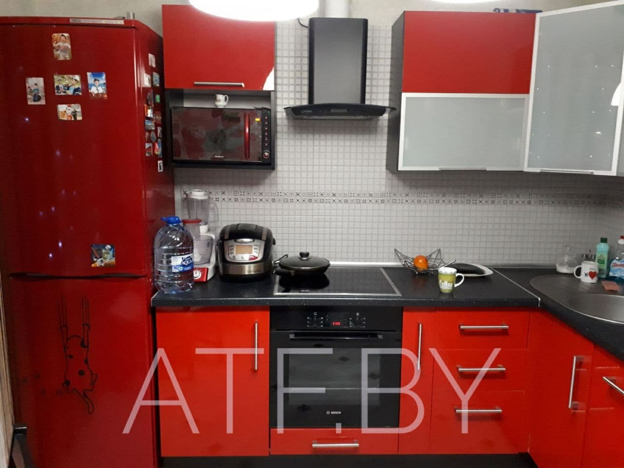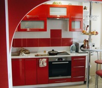 Малогабаритная кухня ярко-красного цвета